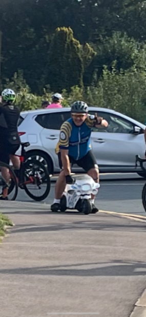I was now a little worse for wear with the sun beating down and feeling awful. We were fifteen miles from the end and I was bonking. Can you believe it, me bonking? At the top of every incline, I needed to stop as this bonking lark isn’t good. We got to Kettle Green Road and everyone was up the hill like whippets. Obviously, I was proper bonking!