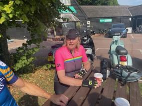 The miles were eaten up and before we knew it, we had got to the cafe by 10:15 am. Amazing, eh! Still no punctures and only a slight mechanical with David’s chain slipping off, but quickly popping back on.