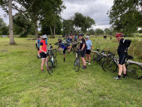 Down to 14 riders until Mark Sims turned up - I had to pinch myself. Then Rebecca turned up with her new bike - nothing like a new bike day.