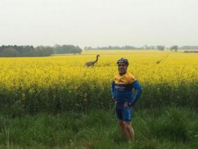 We tried to explain to Brian that it was only a toy but he did insist on trying to feed it. That was the last we saw of him as the killer Rhea chased him down the road whilst trying to disembowel him with its six inch talons. Lots out today despite the promised downpours which turned out to be just a two minute heavy shower. The meds went to Hitchin with Alex whilst Bob took the easies to Buntingford. Only one puncture and we were all home before the rains really started.