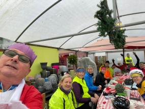 Lovely food came out and then, the icing on the cake, the ladies at Mill End came out with Mulled Wine for everyone. We decided to stay and have a few glasses and all got absolutely smashed. Ah, no, we didn’t, we had a cup of it, that took the chill off. Well it took the chill off most of us, except poor old Rebecca, she looked like she had walked into a freezer and remained it for about 4 hours. She got her hand warmers out and shoved them into her gloves.
