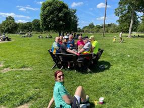 At 9.35 we set off. I don’t think anything really happened on the way to Hatfield Forest, apart from Chris; he was telling us all about him jumping off the tables the night before after the fourth bottle of wine!