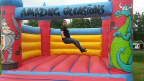 In the morning the weather was unpromising - a fine, misty drizzle. However, by 1:00pm it was dry and warm. Certainly it was warm around the BBQ where Mark, Lee and Brian had the charcoal ablaze and the first burgers were on the go. During the morning they had set out the giant games and arranged the set-up of the bouncy castle - so all was ready for the arrival of members and guests after the morning's club runs.